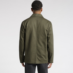 Construction: Three pocket, collared shirt jacket, unlined, gathered back at yoke, corozo buttons to close